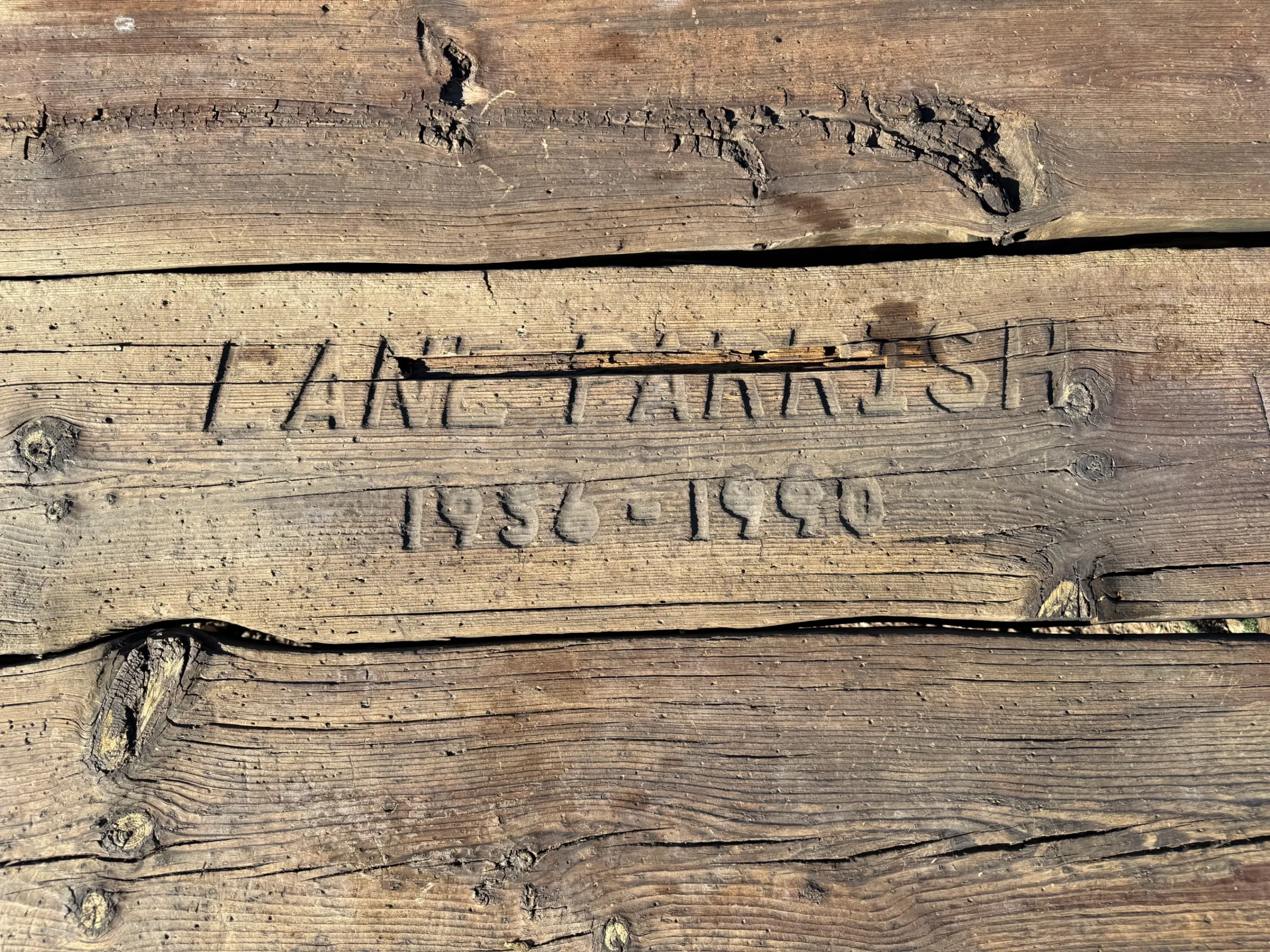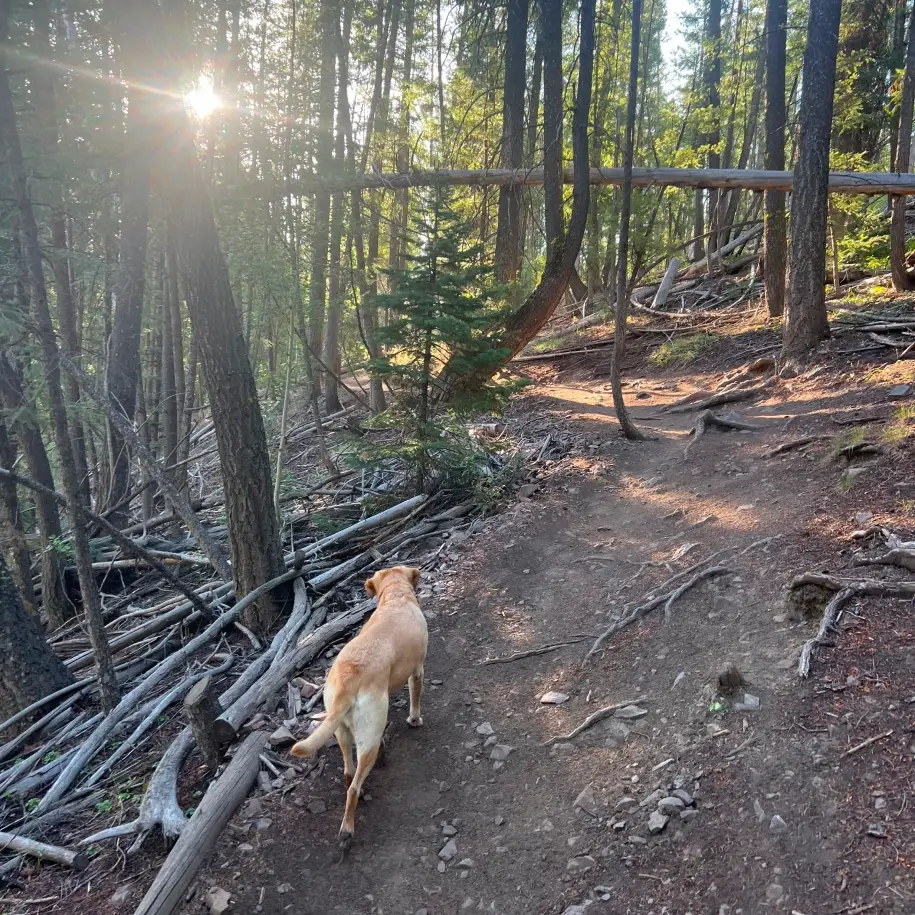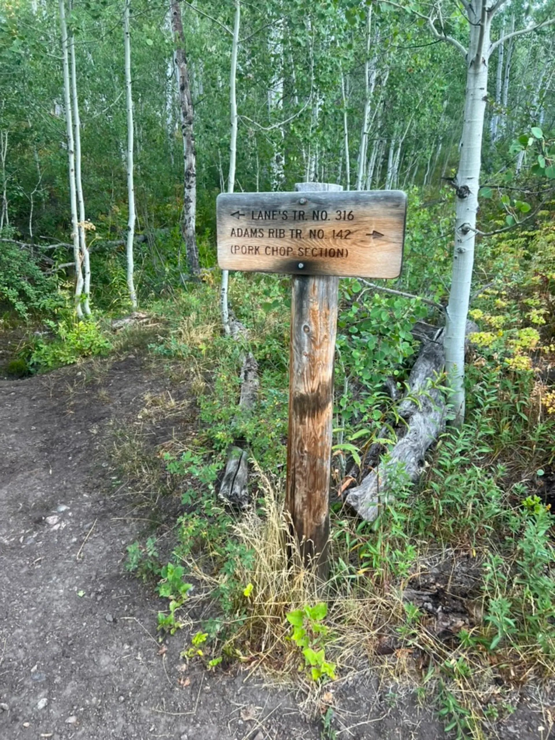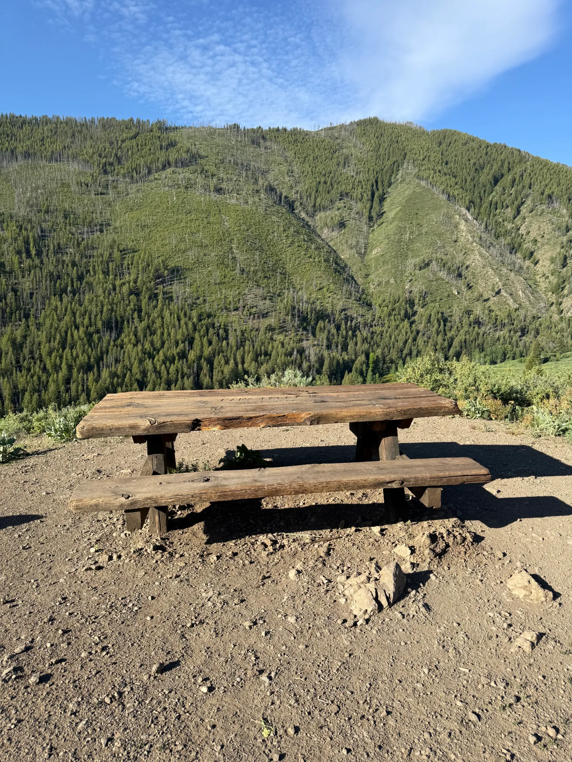 At 1.4 miles, you will reach the apex of the hike. Take a second to visit the picnic table on top of the hill. It was placed there to honor local skiing legend Lane Parrish who died in a plane crash in 1990.