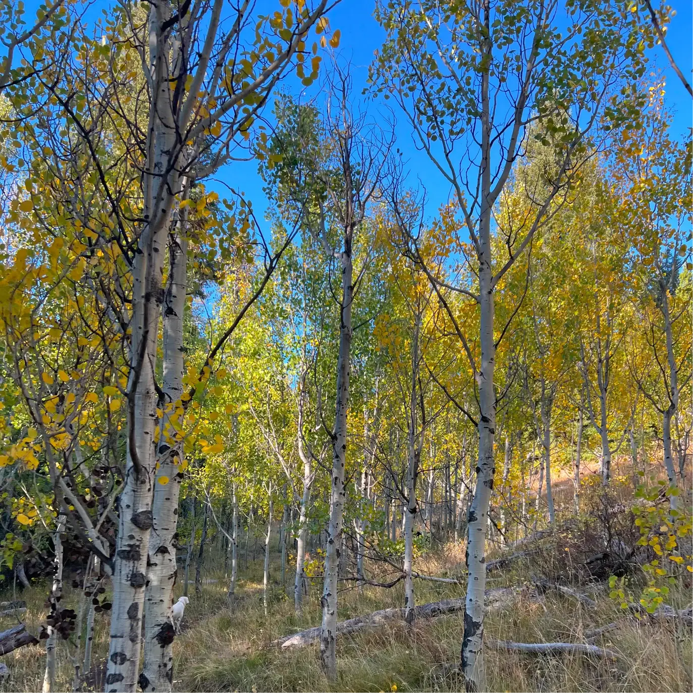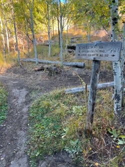 The trail takes you through alternating patches of aspen groves and open areas. Just before the half mile mark, you will come to a signed junction for the Saddle Trail. Stay left.