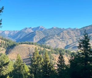 Just after the junction, you enter thicker aspen groves and then into a nicely shaded pine forest. During wet seasons you will have to watch your footing as you cross a series of small streams between the half mile and .75-mile mark. At the mile mark, the trail steepens slightly as it winds along a hillside on the way to its summit. As you climb, there are stunning views of the wild Boulder Mountains to your left.