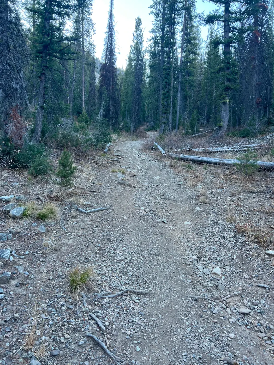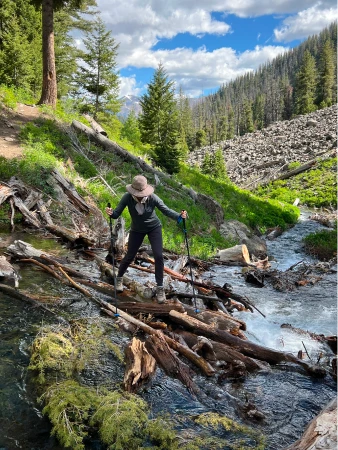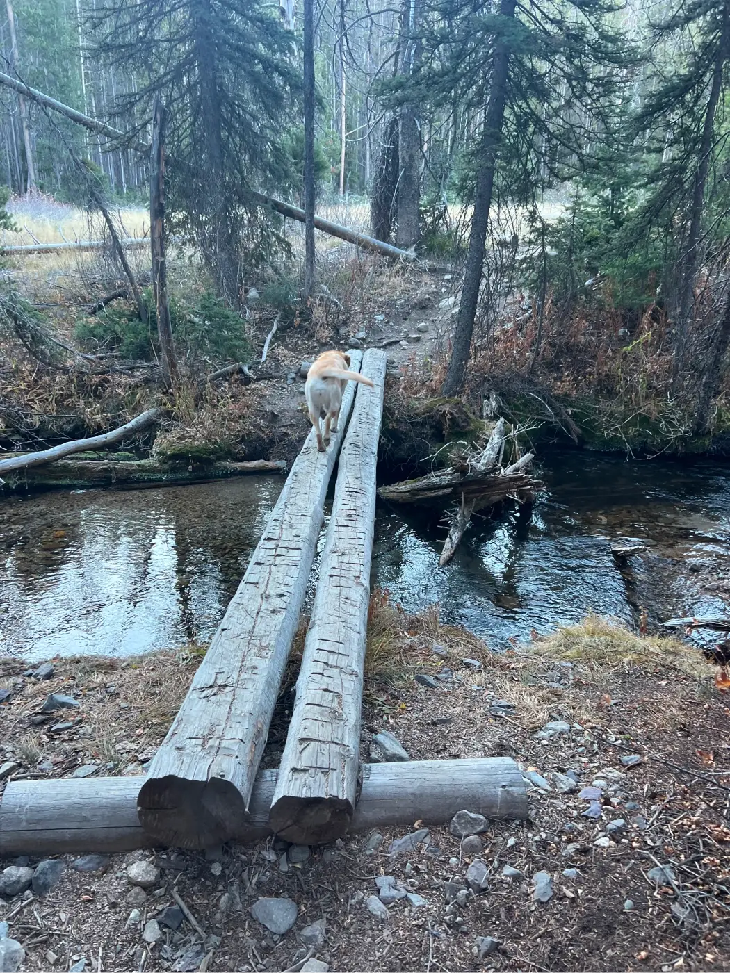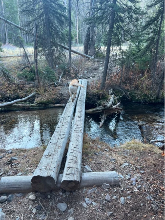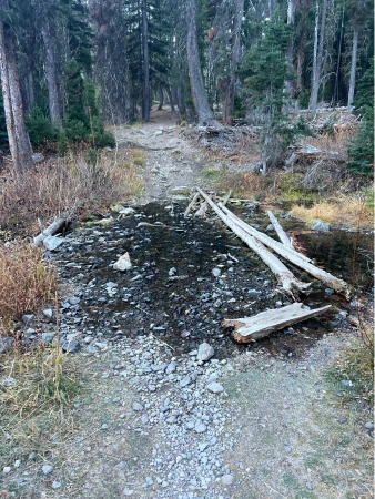 Regardless of which way you start, there are a number of stream crossings within the first 500 feet. Use deadfall to cross each of them.