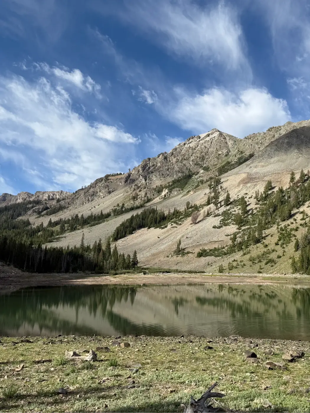 There are multitudes of alpine lakes spread throughout the Sun Valley region. Each lies somewhere on two continuums – from stunningly beautiful to quite stark and from easy to reach to impossible to access. During spring and summer, Mill Lake sits in a sweet spot. It is picturesque and the hike up to it is challenging, but enjoyable. The route starts with a pleasant rolling stroll through a forest before becoming a difficult climb through varied terrains of meadows, forests and tallus hills. The lake itself is serene, framed by the impressive rocky peaks of the Smoky Mountains.
