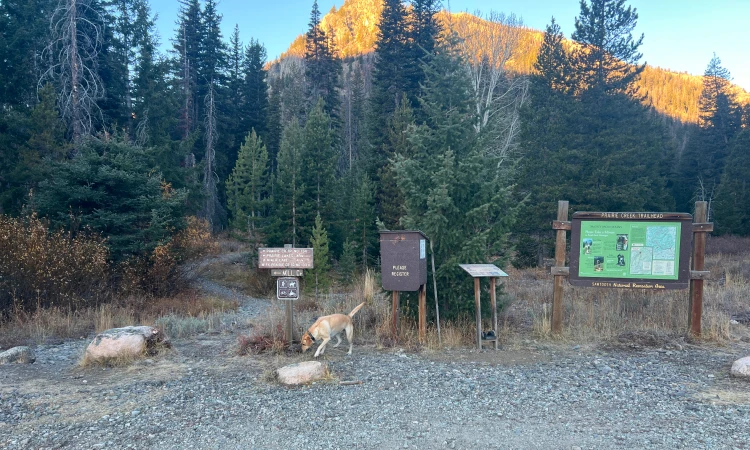The trail re-enters the forest and continues to roll until .67 miles where the rise intensifies. Mill Creek runs through a nearby gully, sometimes nestling up to the trail with small waterholes offering dogs a chance to cool off and grab a drink. The climb continues until just after the 1-mile mark, when the trail starts to descend to the creek.