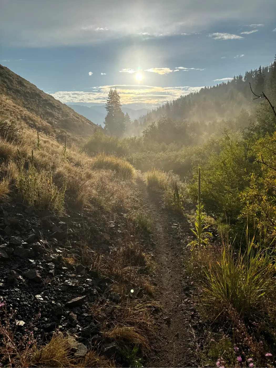 This pleasant stroll through an attractive gulch is an excellent hike for families with young children and anyone who struggles with tough climbs or descents. The sun-soaked trail begins in a wide gully that narrows as you head towards the Smoky Mountains. A stream parallels the trail and there is a small pond for dogs to swim in along the way. Although the trail extends beyond this hike’s designated endpoint to link with the Chocolate Gulch and Baker Road systems, our recommended turnaround location is situated under the shade of Douglas pines – an ideal setting for rest or a picnic.