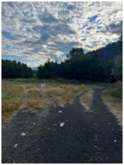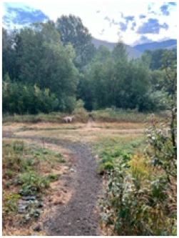 Trail Creek flows to your right as you continue along the wide path. Just before .2 miles, the path splits. Veer right and cross a bridge over the creek.