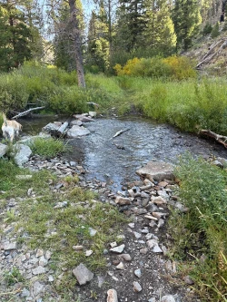 The trail rises just a bit at 1.6 miles and then rolls down through a large patch of willows. Just after the 1.8 miles mark, come to a junction with Rooks Creek. This is the destination. There is an area to the right of the creek to sit and relax or enjoy a picnic.