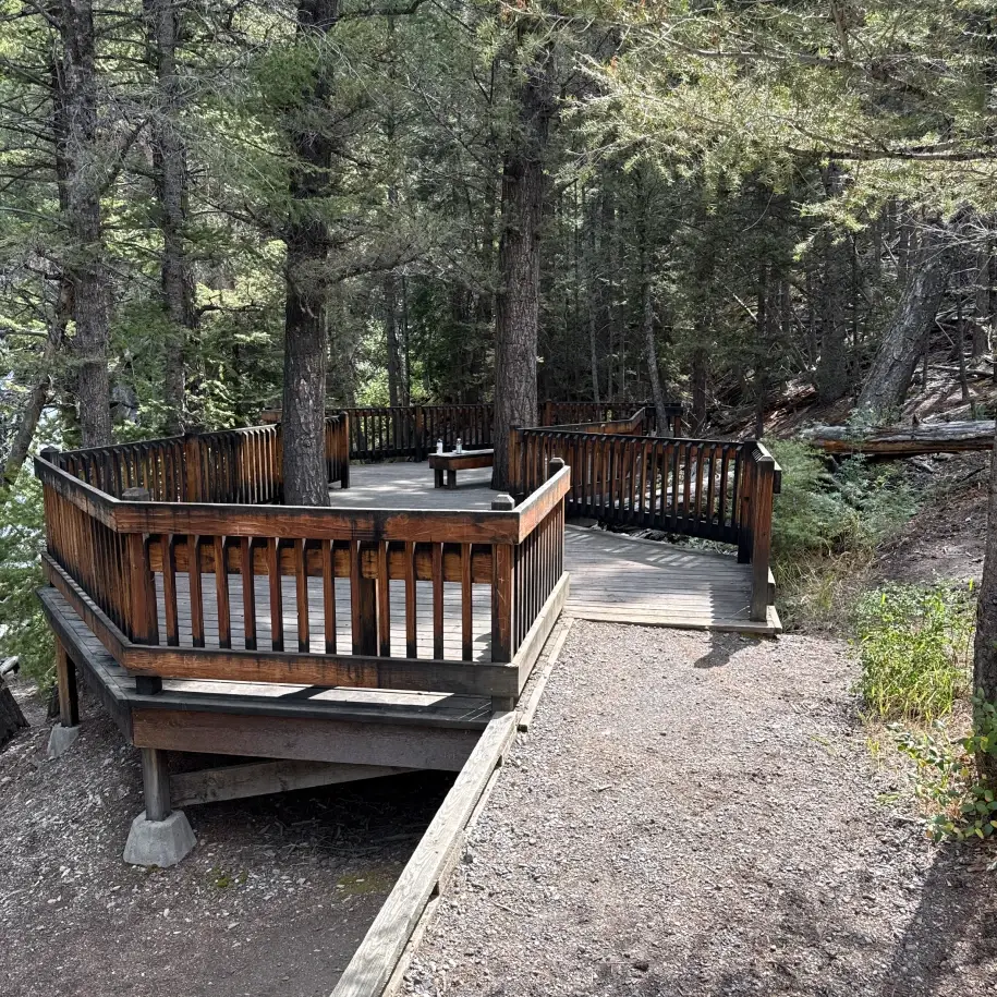 This short, flat, wide trail leads to one of the most beautiful waterfalls in the Sun Valley region. The trail is compliant with the Americans with Disabilities Act, though the trail alternates between pebbles and pine straw, making it a bit of a tough go for typical wheelchairs. There is a large viewing platform at the end of the hike with a couple of benches. Below the platform there are a number of spots for families to sit and enjoy a picnic.
