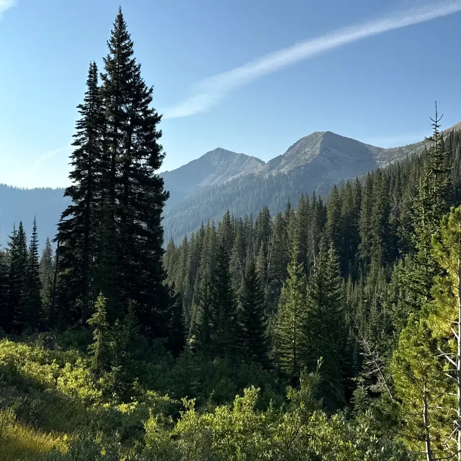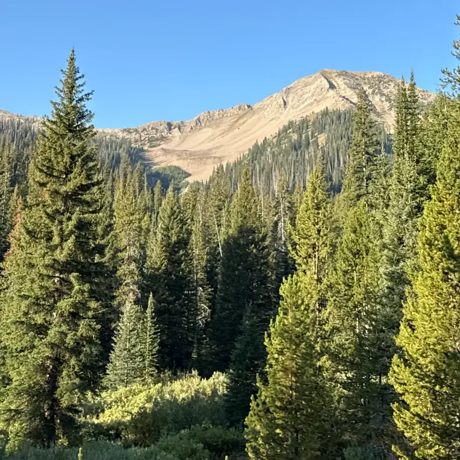 At .4 miles, enter the woods. The trail glides through this pleasant shady section and nestles close to the creek just before the mile mark, though the often runs dry by late summer. The trail begins to rise and beautiful views to the Boulder Mountains emerge.