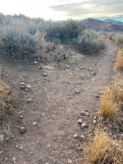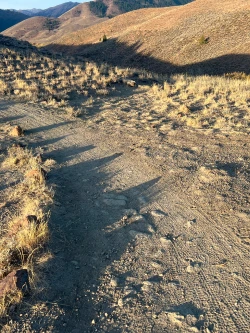 As you curl around a small rocky knob, Ketchum’s Big Wood neighborhood lays in the trees in the valley to your right. At .9 miles, come to a signed junction of White Clouds and the Big Wood Connector. Continue straight and access the high road that turns to the right.